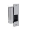 Hanchett Entry Systems 10680403is a fire rated, compact, high performance electric strike featuring a unique concealed design for use with cylindrical locksets. Cutting on the frame is not required. Simply remove the existing strike plate, adjusting the vertical alignment feature to the latchbolt centerline and install. Its strength is derived from a unique keeper pin locking design, enables the 8300 to exceed the ratings of the frame, door and locking hardware. This unique electric strike is easy to install and complies with NFPA 80-07 guidelines for retrofit into fire rated frames. The 8300 accommodates latchbolts up to 5/8 inch throw.CLICK HERE FOR Hanchett-10680403-specifications.pdfSpecificationsUL 10C, fire-rated, 3 hour (fail secure only)UL 294 (6th Edition) listedCAN4-S104 (ULC-S104) fire door conformantNFPA 80-07 compliantUL 1034 burglary-resistant listed and suitable for outdoor useANSI/BHMA A156.31, Grade 1NFPA-252 fire door conformantASTM-E152 fire door conformantUBC-7-2-94, Uniform Building CodePatent #5,934,720; 8,146,966; 8,157,302Frame applicationMetalWoodElectrical.24 Amps at 12 VDC/VAC.12 Amps at 24 VDC/VACDC continuous duty/AC intermittent duty onlyStandard FeaturesFalls within the guidelines for retrofit into fire-rated framesNo cutting on frame requiredVertical adjustability to accommodate door sag and misalignmentTamper resistantStatic strength 1,500 lbs.Dynamic strength 70 ft-lbs.Endurance 500,000 cyclesField selectable fail safe/fail secureNon-handedAccommodates 1/2″-5/8″ cylindrical latchbolt (5/8″ with 1/8″ door gap)Strike body depth 1-1/16″Plug-in connectorFive year limited warranty
